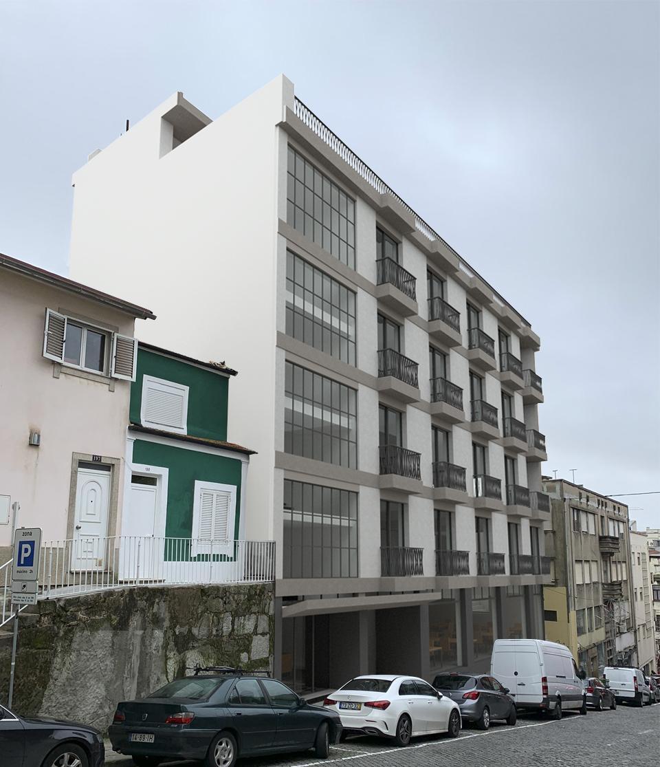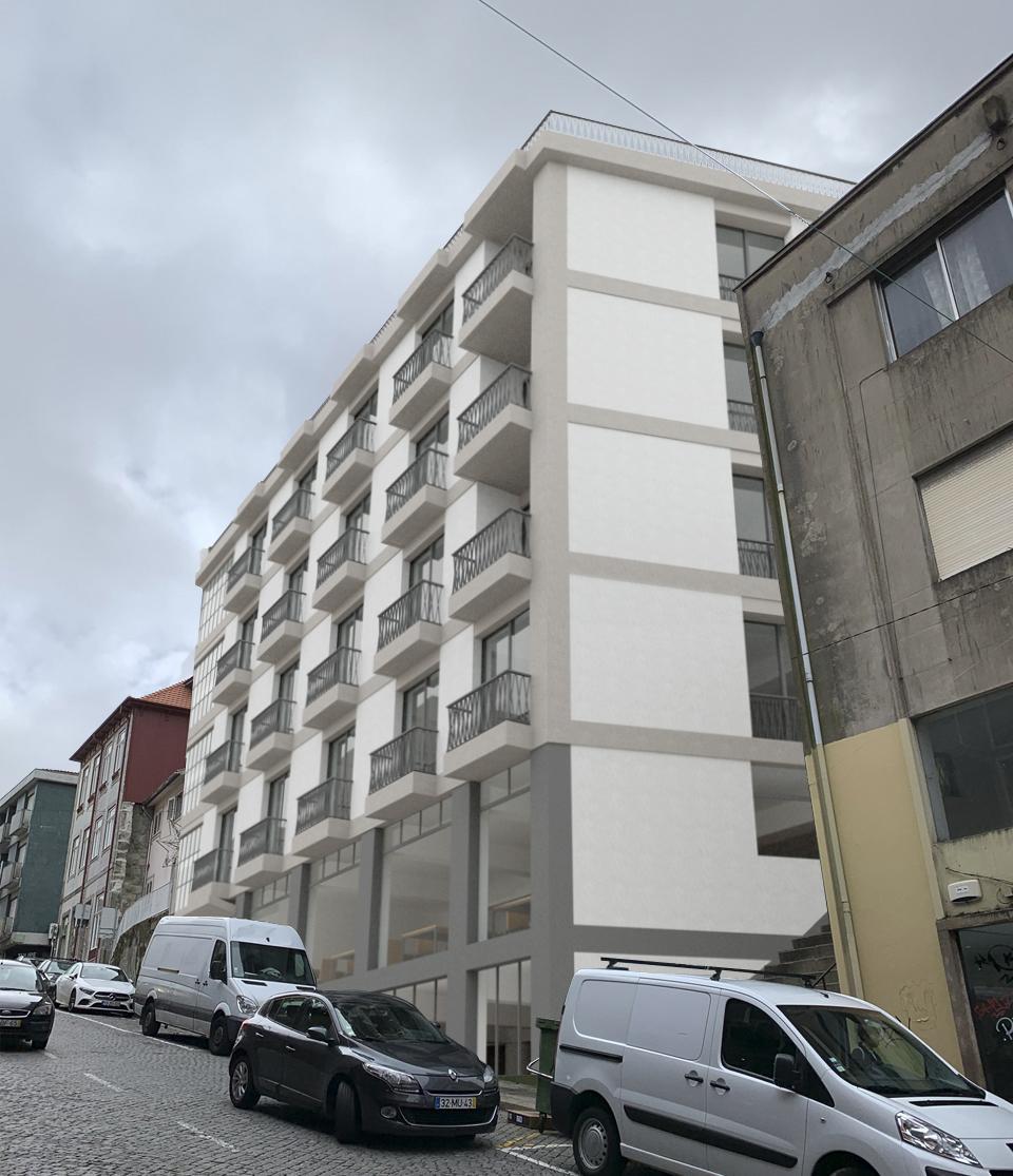 Reconversão de edifício de serviços e comércio em habitação de tipologias T1, T3 e T4 duplex e espaço coworking.